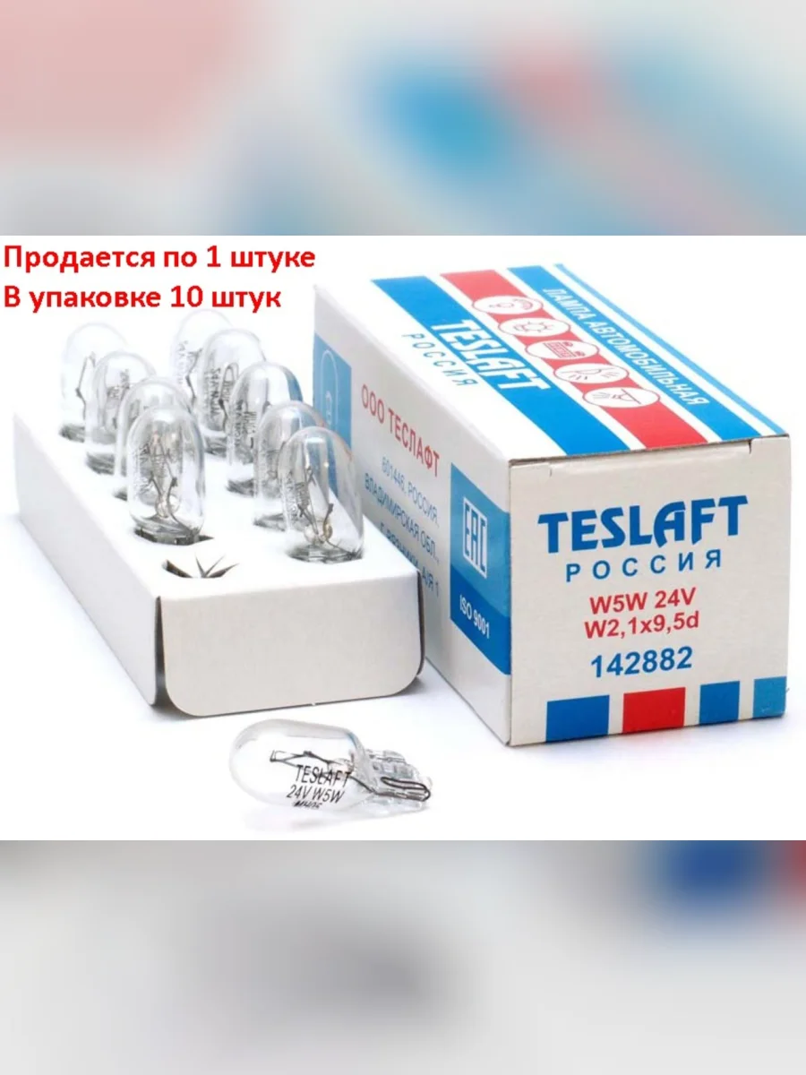 Лампа 24V W5W T10W W2.1x9.5d 50лм Стандарт TESLAFT (Россия) в Туле Тульской области