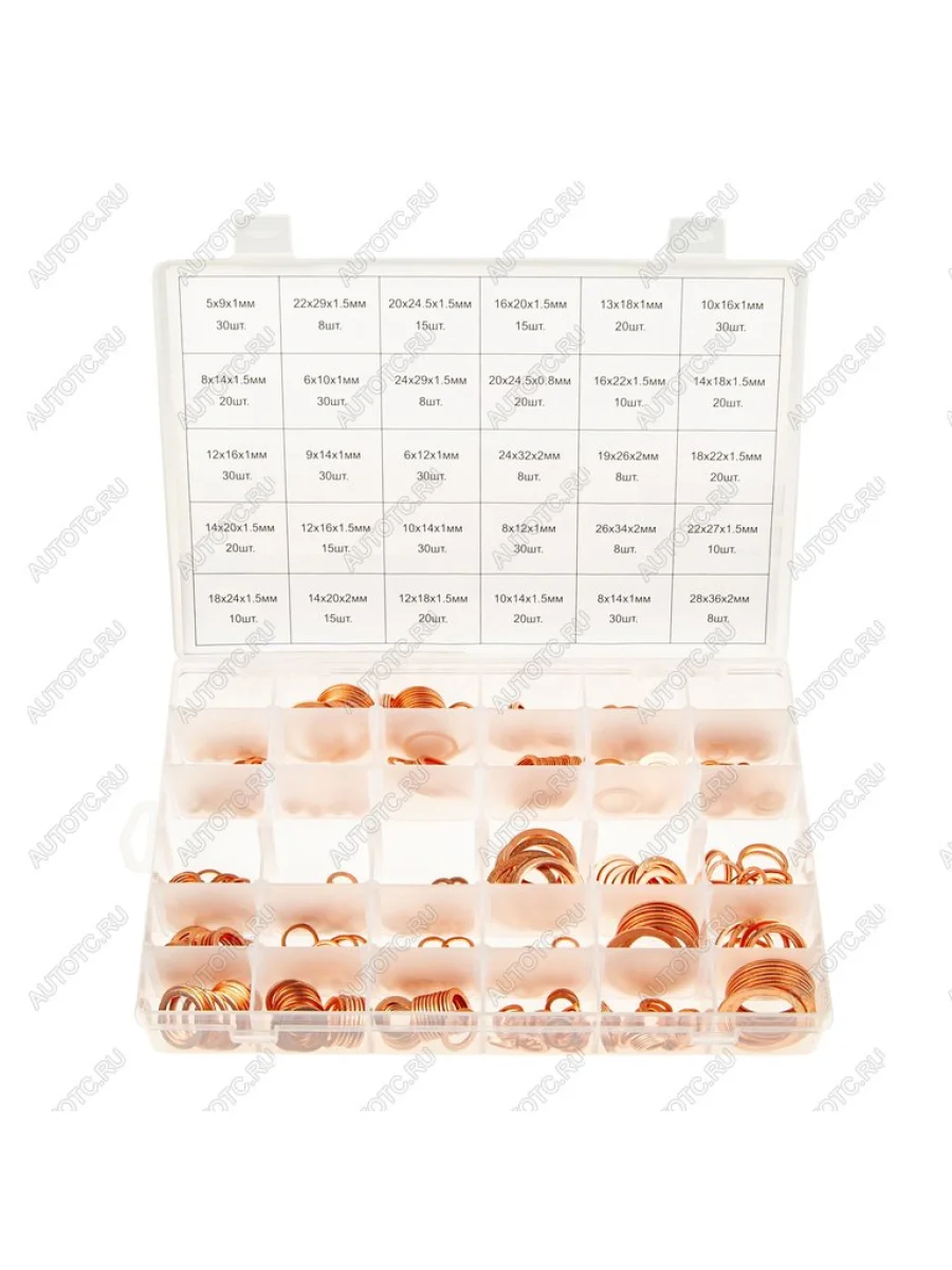 Шайба медная набор 568 предметов (5х9х1-28х36х2мм) в кейсе ЭВРИКА ЭВРИКА er-77568 в Туле Тульской области