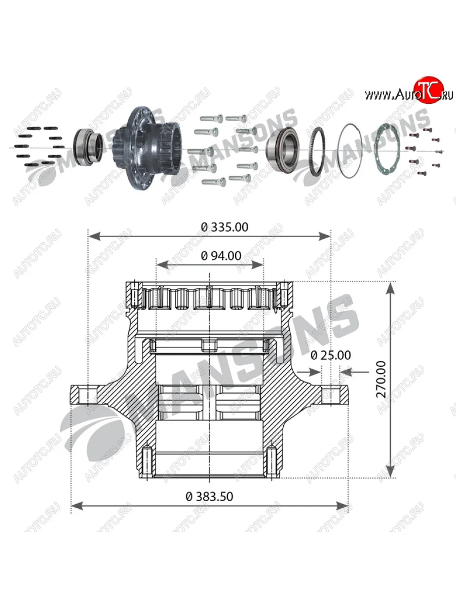 Ступица RENAULT Premium задняя (с подшипником шпильками) MANSONS MANSONS 900.464 в Туле Тульской области
